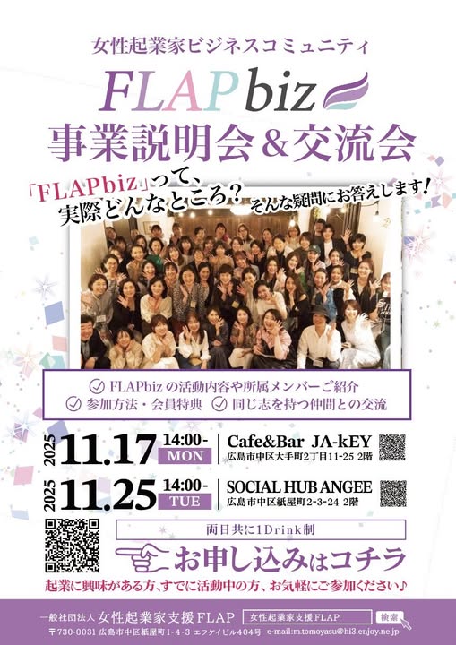 \今の自分に満足できず、モヤモヤしていませんか?/ 「やりたい事があるけれど、誰に相談したら良いの?」 「家事・育児・介護と仕事との両立に不安がある」 「ビジネス経験が少なく、前に進む勇気がない」 一人で悩みを抱えこまなくても大丈夫。 FLAPはあたらしい女性の起業スタイルを応援します。